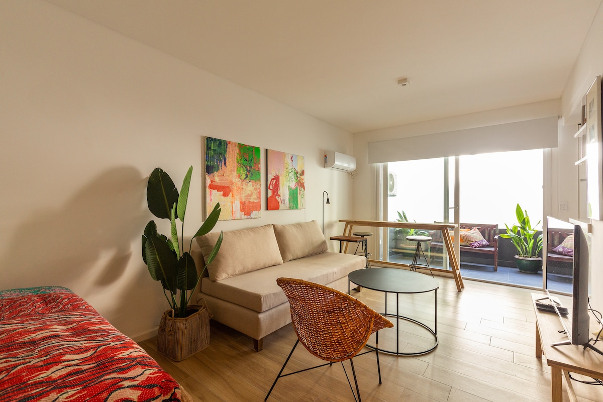 Bright apartment in the heart of Palermo Soho, without a doubt the best in the city in terms of design businesses, gastronomic variety and quality, local fairs, tourist attractions, bars and nightlife. The wifi is 100 mg. A few steps from the subway between Plaza Serrano and La Rural. It has a super comfortable double bed and a sofa bed. It also has a balcony where you have a panoramic view of this colorful and fun neighborhood on its main tourist street.