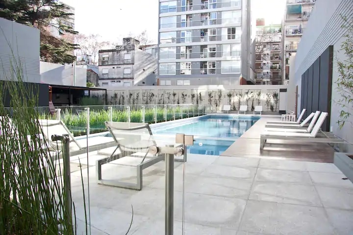 Chic and spacious apartment in the best location, near the Palermo Rose garden. It features a complete kitchen, a living area, a dinning and working space. A balcony with a view of the treetops, a full bathroom with an extra large bathtub and a small lavatory for visitors. The building has a rooftop pool, a gym and a laundry room. It's in the best area of Buenos Aires, close to the rose gardens, the mosque, Arcos de Palermo, the casino and the Jumbo. Night and day life. Super cohost