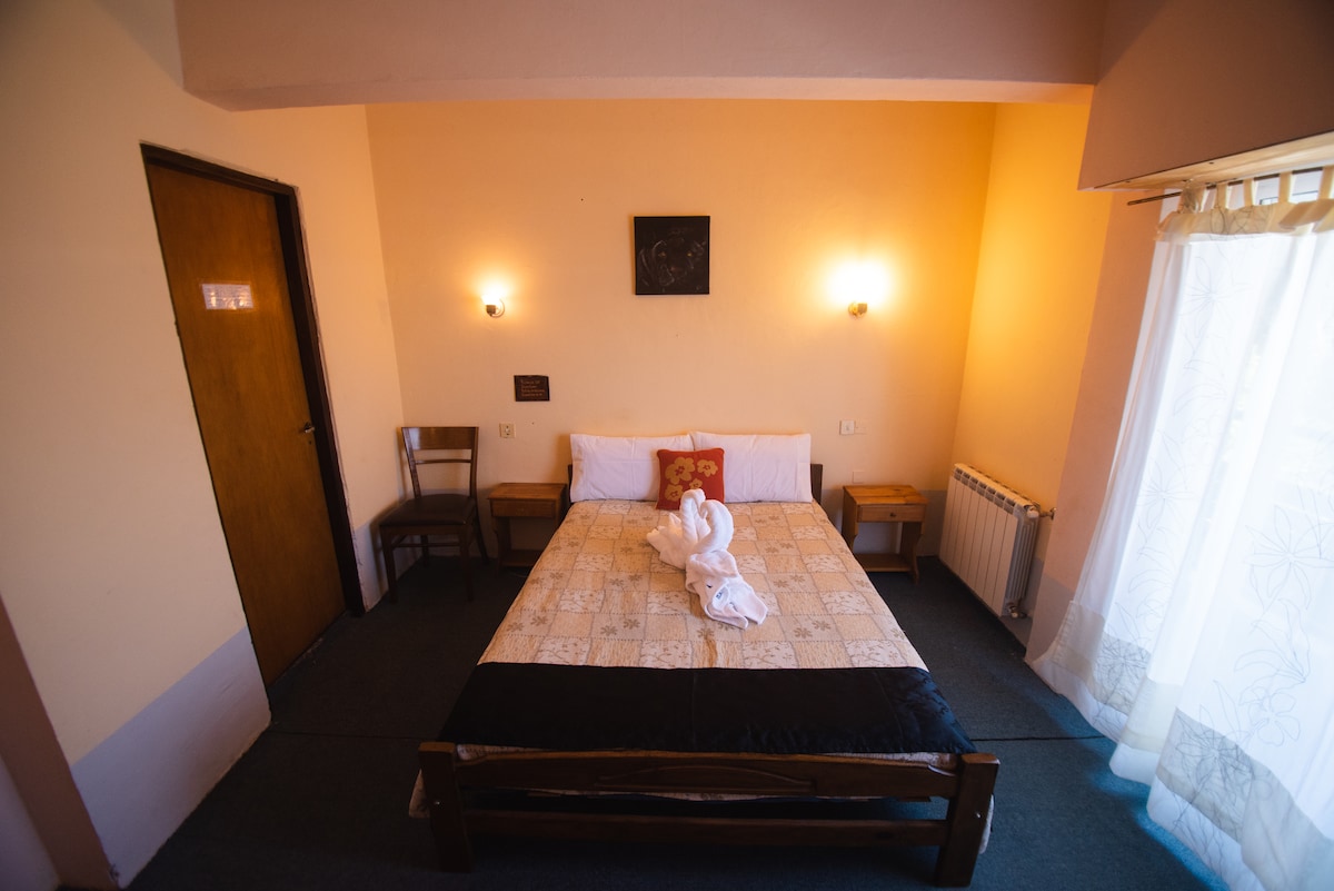 Dubbele slaapkamer in ecologisch kleinschalig hotel met in-house organische keuken ( op aanvraag )( 0% gluten ), 'salon cultural' en dakterras met zwembad. linnen lakens en gordijnen, badlakens van organisch katoen ... ook gelegenheid tot lang verblijf aan de overkant van het gebouw is er parking ( betalend )