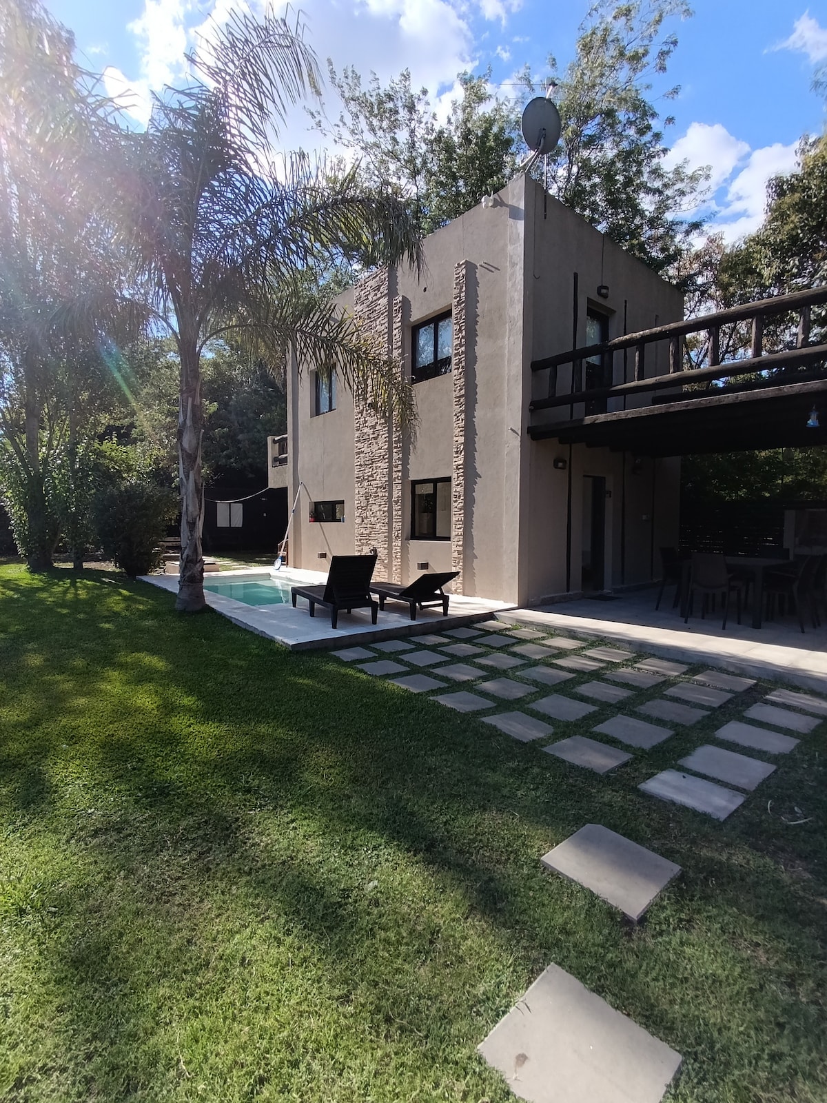 Casa Moderna con Toque Vintage en Salvador María, Lobos. Ubicada en el exclusivo barrio Los Fresnos, rodeada de pinos y casuarinas. A 15 min del centro de Lobos y del Aeroclub Fortín Lobos, 5 min de la Laguna (ideal para deportes acuáticos) y 3 min del Campo de Polo La Araucaria. La casa, tiene pileta con cascada, parrilla móvil, terraza y salamandra para noches frías de invierno. Fácil acceso, incluso en días de lluvia. ¡Ideal para disfrutar la naturaleza y relajarse todo el año.