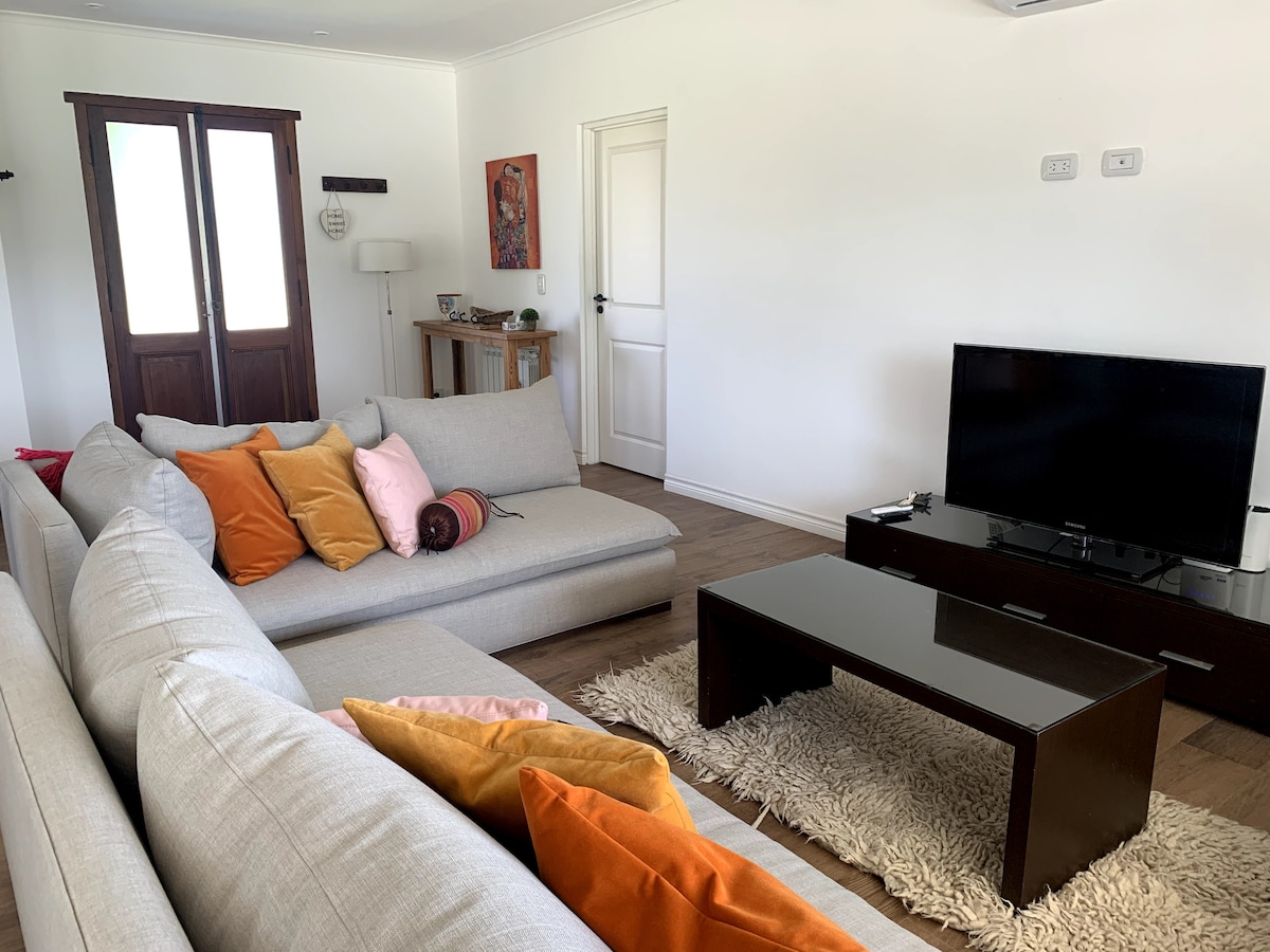 Casa de Campo muy cerca de la cuidad, cuenta con un parque de 3500 mt2 pileta, sector de Parrilla con horno de barro y una gran galería que desde allí tenes la mejor vista! La casa cuenta con living cocina integrada, aire frio calor, dos habitaciones con un baño completo que comparten. Una de ellas con cama matrimonial y Tv la otra con Tres camas individuales (la dos con aire y placar).TV con Netflix. También cuenta con lavadero y baño adicional. Consulta por late check out según disponibilidad!