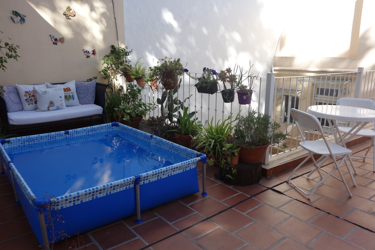Access through the patio of the ground floor apartment. The studio apartment is located on the first floor of a house and is accessed through the staircase of an outdoor patio. It has its own terrace level. On the ground floor I live, a 48 year old architect. *** WiFi Private kitchen. Private bathroom. Dining area. Terrace with grill and outdoor shower. Bed 90cm wide, table, shelves, coat rack, drawers, air conditioner. Bed-sheets. Washing machine.