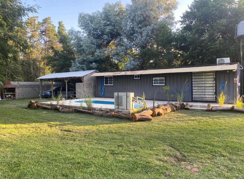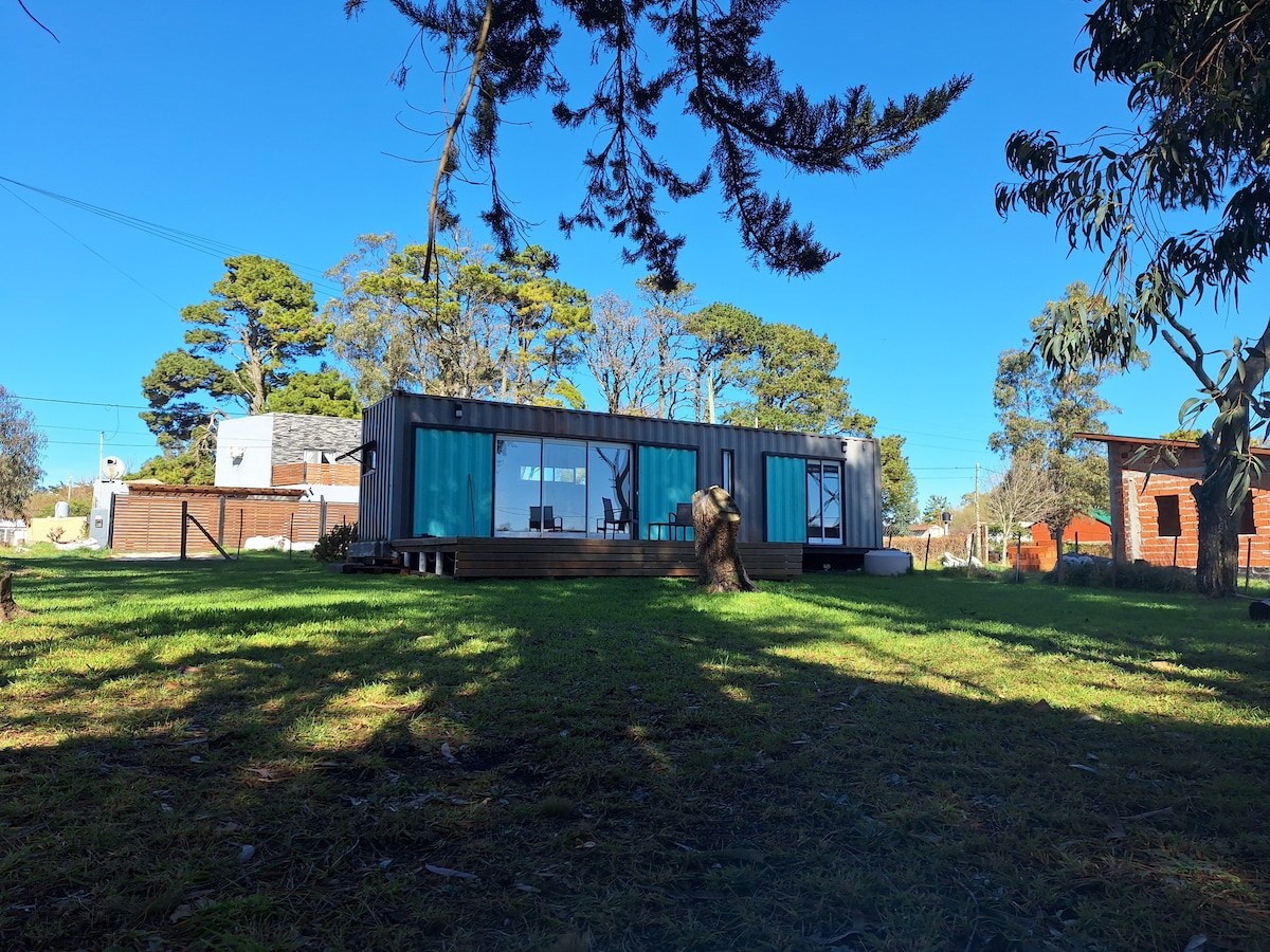 Es una casa armada con un container marítimo de 40 pies, el cual dispone de un living cocina con barra, un baño y una habitacion ideal para parejas y hasta con 2 niños max. dado que los espacios no son muy amplios.Tiene una galería techada de 15mts.x4mts, una pileta chica de 2 x 3 mts. y esta ubicada a 200mts de la playa sobre un terreno de 1900 mts. Posee aire acondicionado,calefaccion,termotanque y cocina eléctricos.En un entorno campestre playero super tranquilo a 25 min de Mar del Plata
