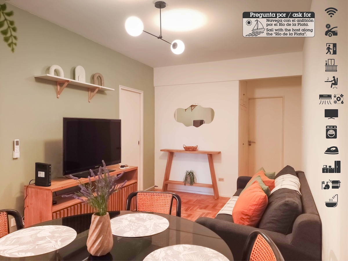 Hermoso departamento antiguo con estilo , junto a los bosques de Palermo para toda la familia y bien ubicado para llegar a todos los atractivos de la ciudad. El departamento tiene 50 m2 cuenta con un living comedor con un sofá cama , una habitación principal y una segunda habitación con 2 camas individuales , 1 baño y un balcón o jardín de invierno con vista al Ecoparque de la ciudad ** TEN EN CUENTA QUE EL CHECK IN ES HASTA LAS 16 HS. ***