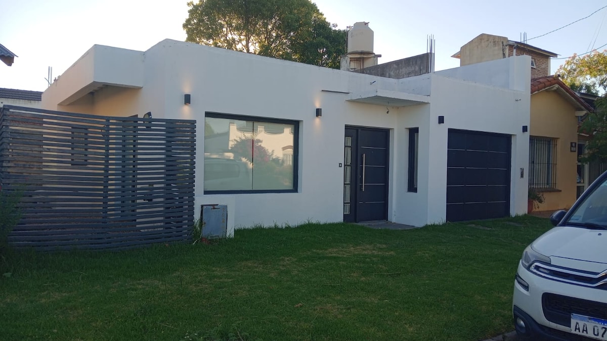 Relajate con toda la familia en este tranquilo alojamiento. Casa amplia a estrenar, compuesta por un parque de unos 500m2 , con pileta de natación, importante quincho con parrilla. Es un barrio de casas quintas rodeado de un entorno rural donde sus principales características es la tranquilidad, y la naturaleza, a 500 mts. del acceso a la ciudad ofreciendo variedad de negocios gastronómicos, esparcimiento y todo lo necesario para tener una hermosa estadía.