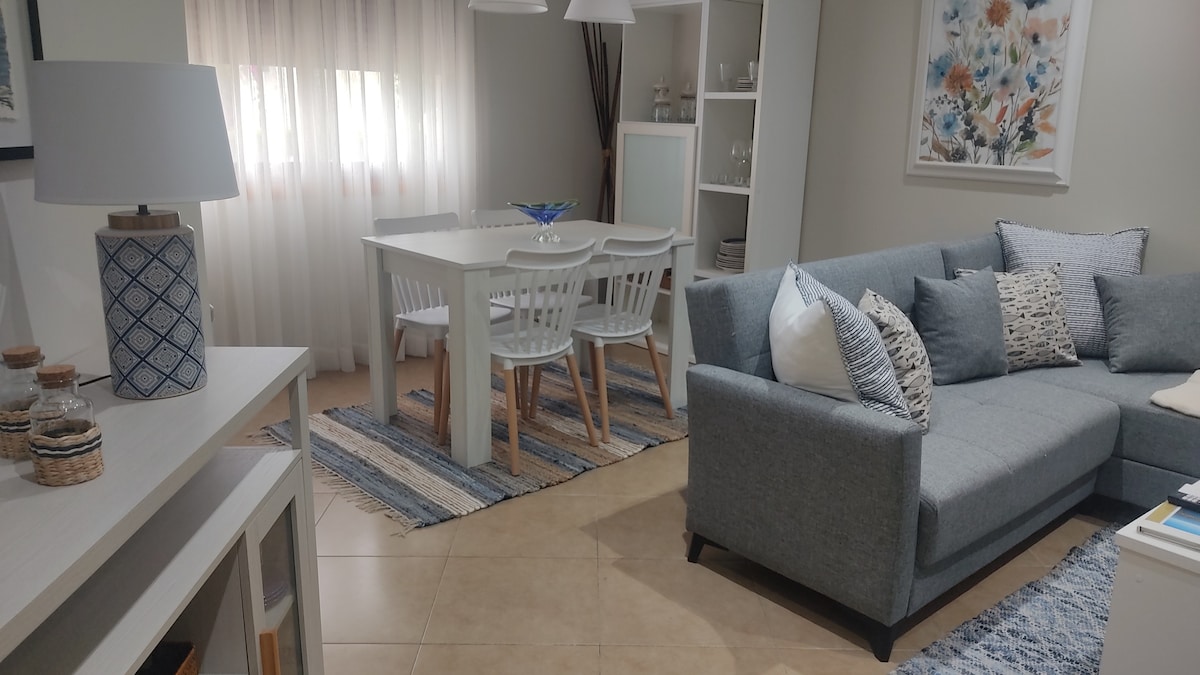 Apartamento en el centro recién reformado, con capacidad para 4 personas entre cama de matrimonio y sofá-cama. Cuenta con Wifi y todos los accesorios necesarios para la estancia. Se encuentra frente al parque da Fonte dos Galos; bien comunicado, cerca del transporte público, taxi, farmacia y a un paso de las playas, supermercados (Eroski, Gadis, Froiz y Día) y tiendas locales.