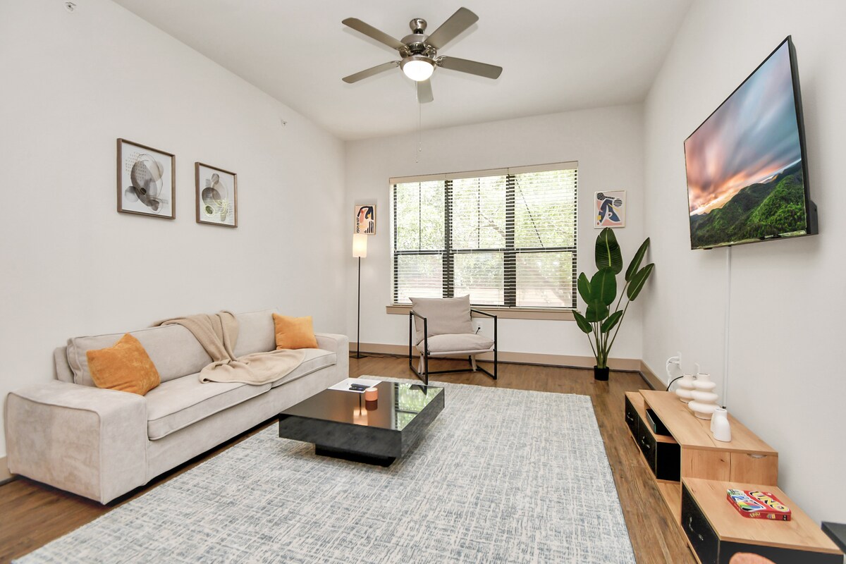 舒适的1卧室,带免费停车位、游泳池,位于休斯顿市中心
