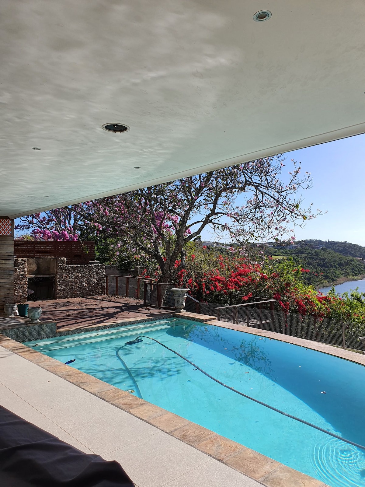This brand new luxury guest studio is ready to spoil you. It has a fully equipped kitchenette to allow for self catering, including a private braai area. A Lovely bathroom with great hot water. Guests can enjoy a swim in the pool and daily walks along the river via the public path across the street. Come and enjoy fishing, canoeing, bird watching and cycling. A few kilometers from the main beach and local surf spots. Near to shops and large shopping malls