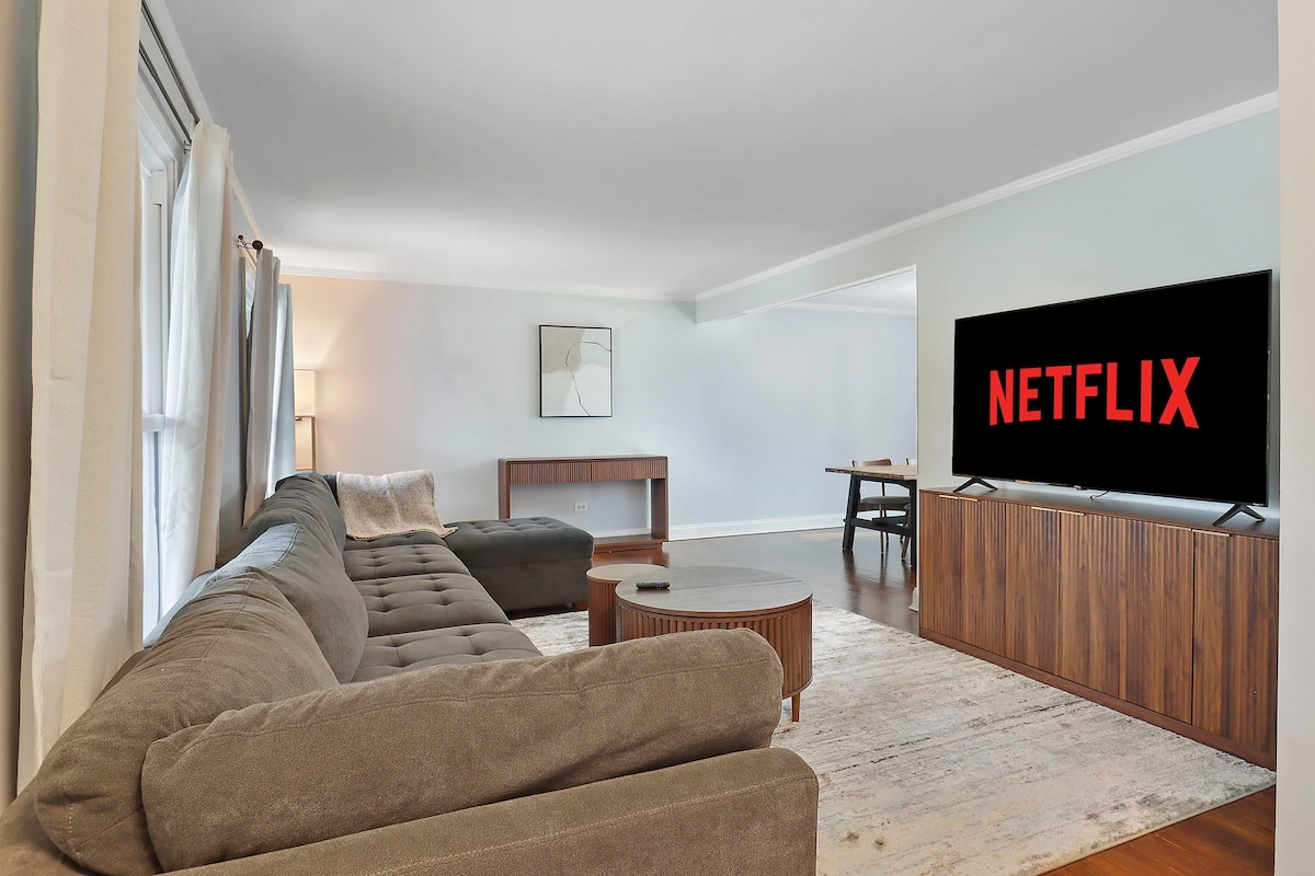 Kick back and relax in this calm, stylish space. This peaceful, quiet apartment is walking distance to beautiful downtown Libertyville. The building is very nicely maintained with an elevator. Located 7 miles from Great Lakes Naval Base and 35 miles from downtown Chicago. The unit is very clean with all brand new furnishings and appliances including HD tv's in both the living room and bedroom. Free ample parking. On-site laundry one floor down. Fast wifi with a dedicated work space.