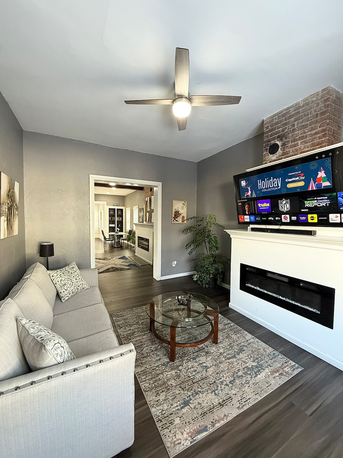 Experience the unique luxury! Perfect for family, business, or romantics. With high end finishes, 16' ceilings, a stunning 6' fireplace, this space exudes comfort & elegance. Unwind in the 5' round tub, or enjoy a movie on the 85' smart tv, while appreciating the building's history. For the active guests, an indoor basketball court and gym. Office area for business travellers. Seasonal rooftop area for sunsets or enjoying the weather. Additional bedrooms can be added for larger groups.