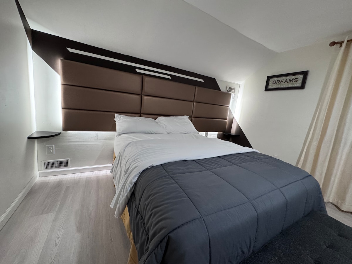 Welcome to 5 Points! Offering a private, hotel room style- 1 bedroom/1 bathroom guest suite attached to a historic home in the heart of the Five Points neighborhood on Buffalo’s Westside. Private entrance. This cozy spot is perfect for an overnight or weekend visit. Mini fridge, microwave and Keurig provided. Just 8 minutes from Downtown and 25 minutes from Niagara Falls. Walking distance to great restaurants and bars. Close to Buff State, AKG, Medical Campus, Convention Center & Arena.