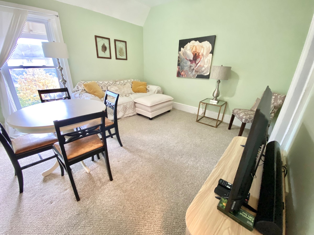 If this listing is not available please check out my other listings This 1st floor apartment features an open concept kitchen & living room with stove, refrigerator & microwave. A queen sleeper sofa & 54" smart TV are in the living room. The bedroom has a queen bed & dresser. The space features a In unit washer & dryer soaker jacuzzi tub and A/C mini split to help cool down the space. This is a mix use property with periment tenants as well as other guest. Noise is typically low