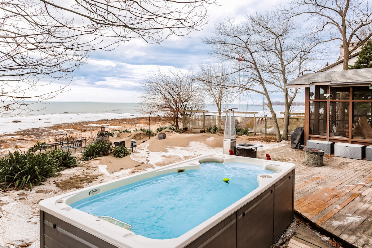 Perched atop a secluded dune, our stylish 4-season, beachfront home overlooks a stretch of the beautiful Lake Erie shoreline. Take the stairs to a private sandy beach where you can relax, stroll, swim, fish, or marvel at the sunsets. Our home is family friendly featuring a smart TV, free WiFI, fully appointed kitchen, 4 comfortable BR, 3 baths. Need provisions or a night out? You’ll find several restaurants and nightclubs, and the Buffalo Bills Stadium are a short distance away.