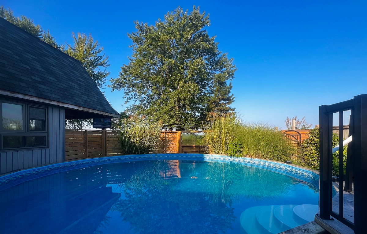 *Special price reduction( almost 50%, sept 12th onwards)to celebrate Fall season.* Welcome to my Niagara Villa.(License B&B facility) This luxury villa offers spectacular décor,private backyard oasis, complimentary breakfast. Guest unit has private entrance,2 Bedrooms,2 washrooms(1 with sky light),full kitchen,dinning & living area has TV,sofa bed.Only guests are using private backyard with hottub (running whole year),kids play pool (open in Summer only) Note:Host is living in the separate unit.