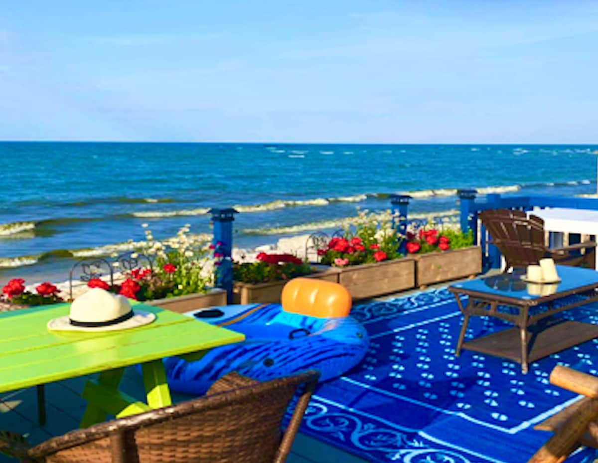 Perched atop a secluded dune, our stylish 4-season, beachfront home overlooks a stretch of the beautiful Lake Erie shoreline. Take the stairs to a private sandy beach where you can relax, stroll, swim, fish, or marvel at the sunsets. Our home is family friendly featuring a smart TV, free WiFI, fully appointed kitchen, 4 comfortable BR, 3 baths. Need provisions or a night out? You’ll find several restaurants and nightclubs, and the Buffalo Bills Stadium are a short distance away.