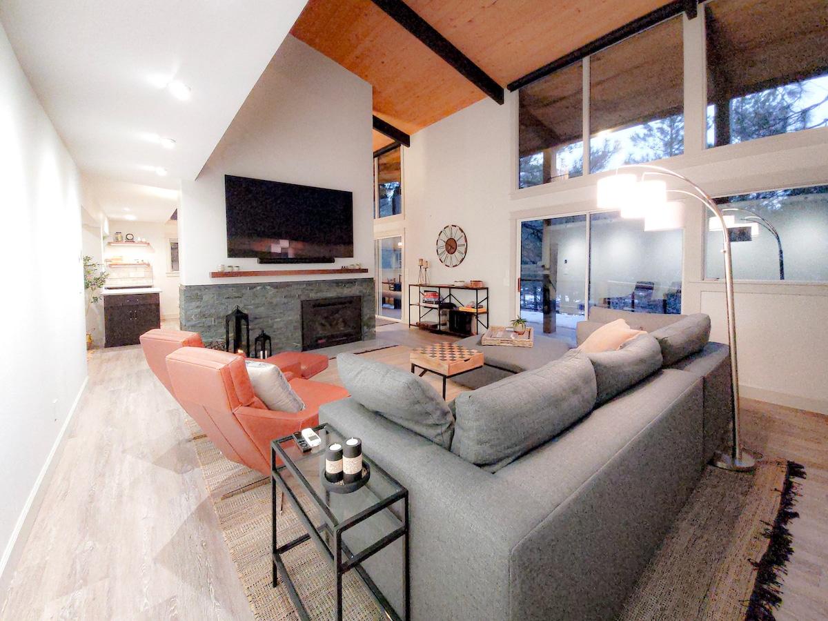 Stylish, remodeled, close to everything, quiet, perfect for relaxing and adventuring! Please read everything below & read section "Things to Know" 2.5 mi to Downtown Nat'l Forest and trails out the back gate! 3BR/2BA, 6 capacity Quiet hrs 9pm-8am WiFi 85" TV Fireplace Large fenced yard Deck Grill Firepit Shuffleboard, cornhole, games NO-SMOKING, NO-VAPING NO PETS Keurig, Nespresso, Drip & Press Cookware, dishware, stemware Shampoo, conditioner, body wash Laundry Rm Central AC for the summer