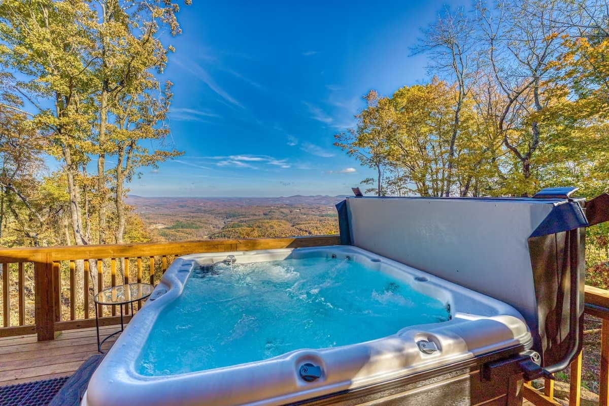 迷人的小屋,带热水浴缸、火坑和景观!
