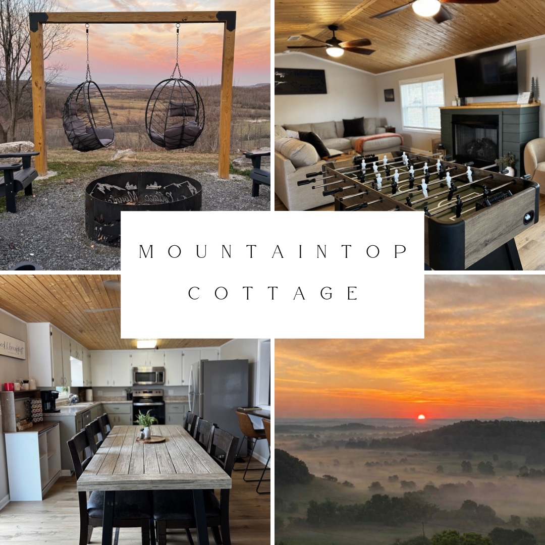 The Mountaintop Cottage is a renovated, unique home with stunning views from its decks. Dark skies allow for a quiet end to the day as you enjoy the glowing embers in the fire pit. Cuddle up next to the gas fireplace in the cozy living room for a nap or to watch a movie on the wide screen television. Your comfort is our main concern. Come enjoy hiking, kayaking, wondering in nature, and breathtaking scenery in the beautiful Ozark Mountains!