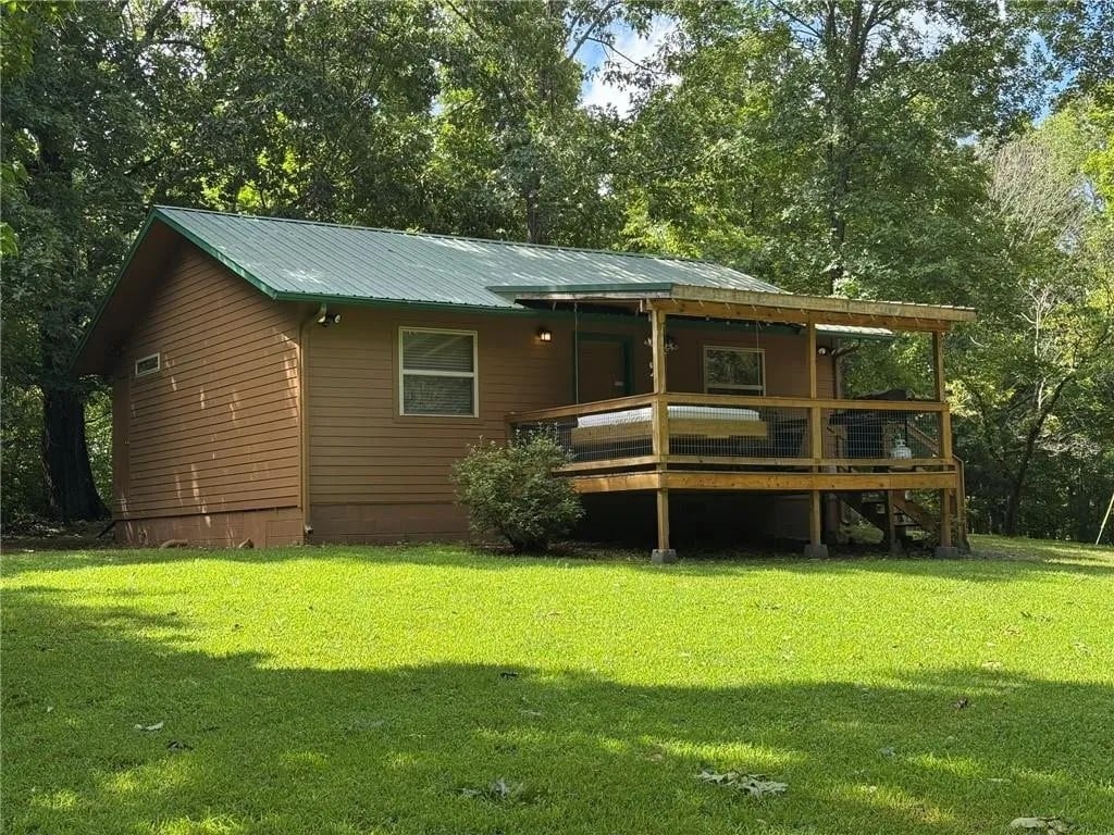 A Still Point Cabin is the perfect retreat. With a beautiful view of the Ozark mountains from your screened deck you can easily escape into nature. Cozy and efficient space makes this cabin the perfect setting for your getaway with friends and family. With a queen bed upstairs, a queen memory foam pull-out couch, and a queen size Cordaroy convertible bag-chair (only big enough for two small children) there is plenty of room for everyone. Newly installed hot tub too!