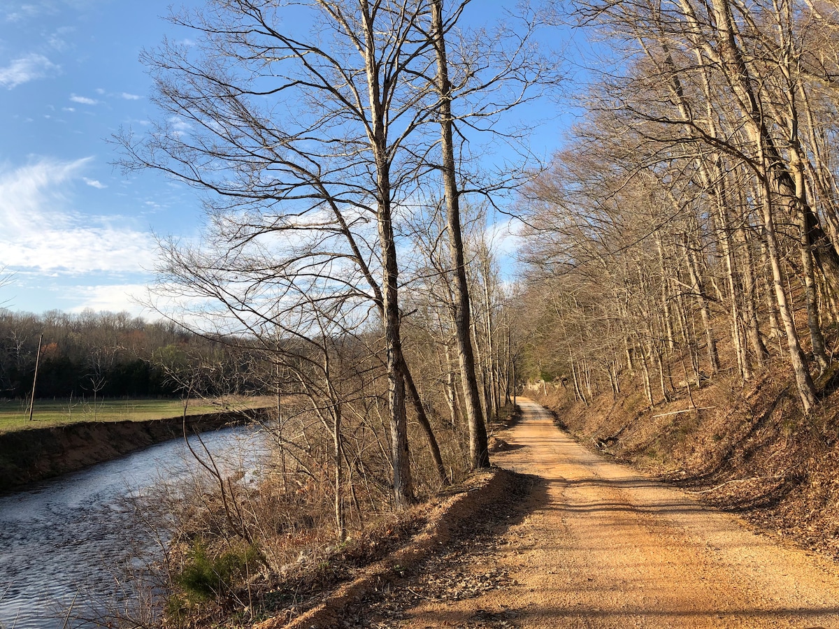 You won’t forget your time in this romantic, memorable place. It is located close to the creek and has a fresh spring fed stream running through it. You will be surrounded by nature and have a short walk to overlook the pond. The road to this campsite goes over a 25' dam with the creek on one side and the pond on the other. Drive carefully as you cross over the dam. It is on the edge of the property line, which is marked with orange lines on the trees. Please be mindful to stay on our side.