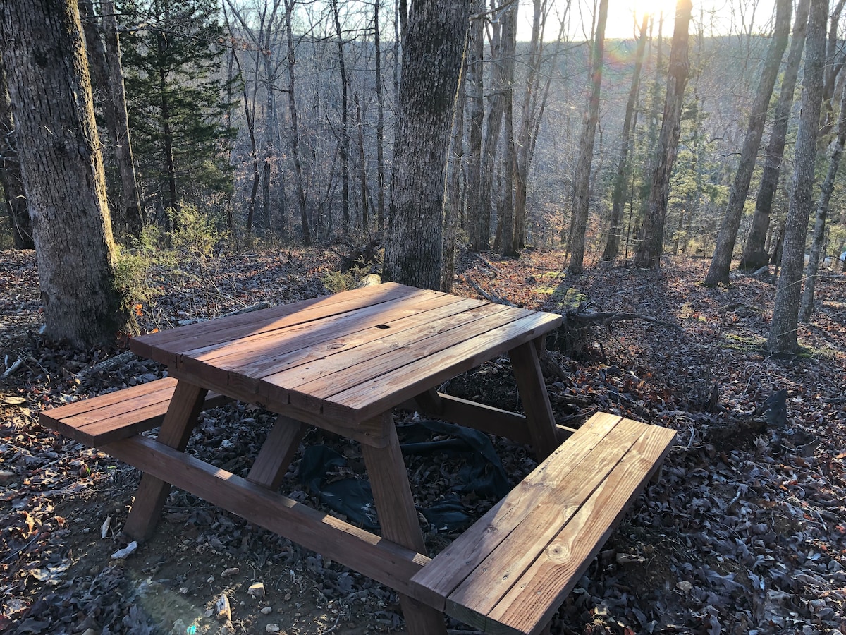 Discover this special campsite! It has a large fire pit, a picnic table, and two chairs. The campsite is secluded and there are no neighboring sites within sight. The sounds of nature are all around you here. Say goodbye to the noisy city life and get away in this wooded campsite to relax and unplug. If you do need to check in with friends or family, there is free wifi at the host's home parking lot. Water comes from the rock here, and the creek is usually crystal clear!