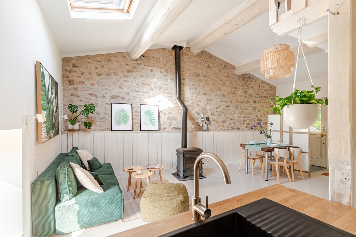 Ce logement unique est un véritable havre de paix, idéal pour se déconnecter et profiter du calme environnant. Entouré par la nature, il offre intimité et détente. En hiver, la cheminée crée une atmosphère chaleureuse : quelques bûches et de quoi faire une flambée sont mis à disposition. Des thermes, accessibles en hiver dans un village voisin, complètent agréablement le séjour. Aux alentours, de nombreux lieux insolites raviront les amateurs d’histoire, de randonnée ou de cyclisme.