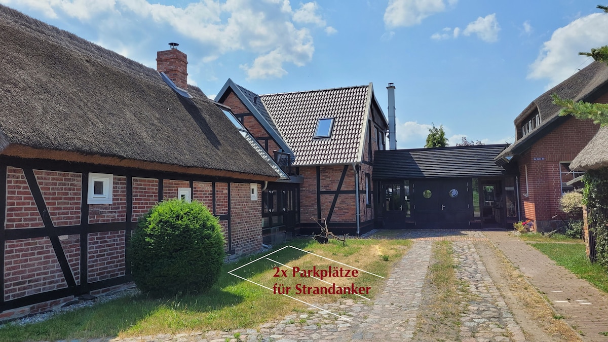 Starting from August 1st, 2023, our luxurious thatched roof house on the island of Usedom invites you to stay. It can accommodate a total of 8 people and is perfect for a vacation with family and friends. Enjoy summer days on the large terrace in the garden and go on an adventure to explore the island. The beautiful fireplace and sauna provide a cozy winter retreat. For workaholics, we have set up a fully equipped office.