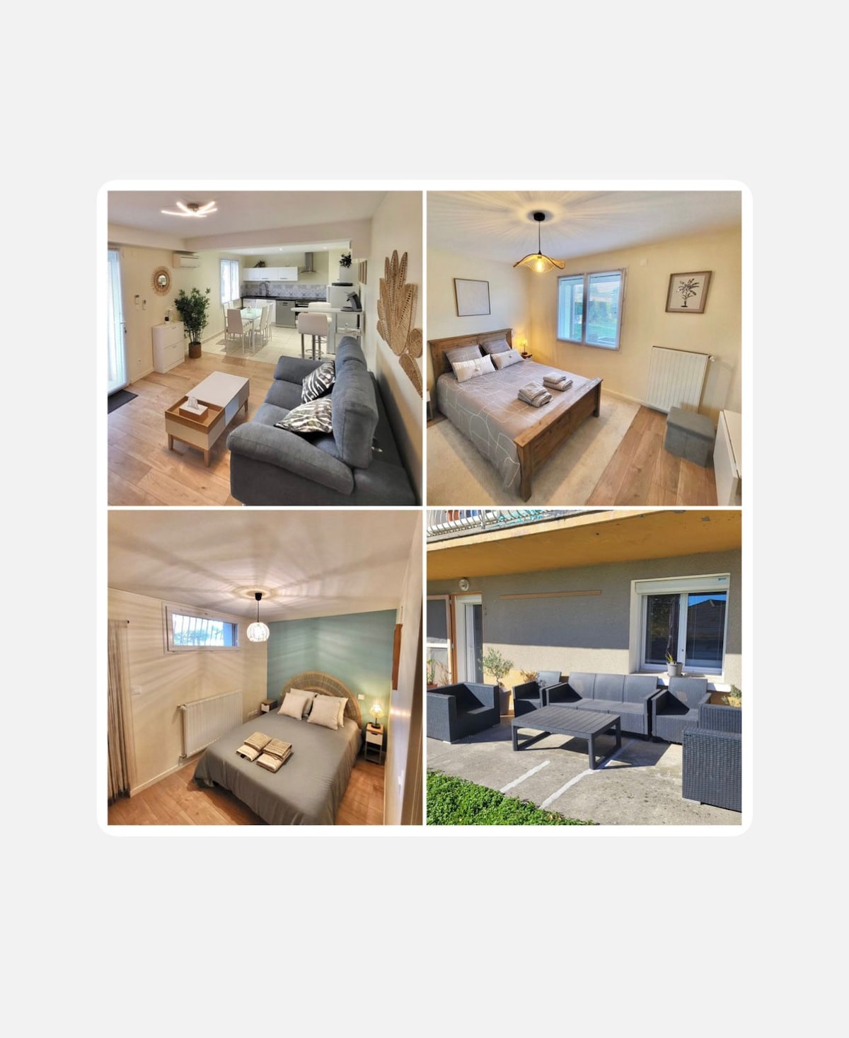 Charmant studio rénové situé au sein d'une petite copropriété au calme, avec cuisine équipée (plaque de cuisson + micro ondes multi fonctions + frigo+cafetière type Tassimo), une salle d'eau, un séjour avec canapé 2 places convertible ainsi qu'un petit jardin privé. A proximité, en voiture, de l'aéroport St Exupéry (10min), de la centrale du Bugey (10min) et du Groupama stadium (15min). Ce studio est situé sur le tracé de la ViaRhôna. Logement non desservi par les transports en commun.