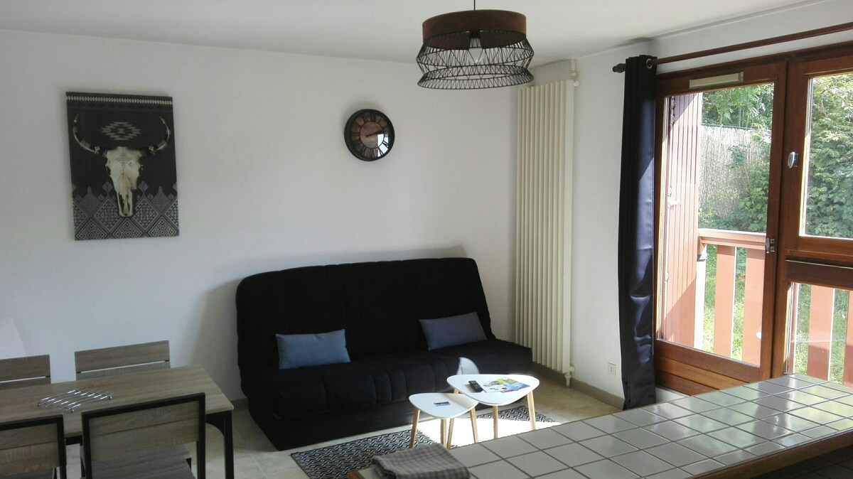 Appartement meublé composé d’une chambre (avec SDB) et 2 lits) (plus canapé sur demande avec supplément de 10€ pour la semaine et d’une cuisine-séjour toute équipée. Avec son accès individuel, cet endroit chaleureux entouré par la verdure vous offrira confort et intimité. Place de parking réservée à 10 mètres de l’entrée. L’appartement constitue le rdc de ma maison, je suis discrète mais reste disponible si vous avez besoin ;)