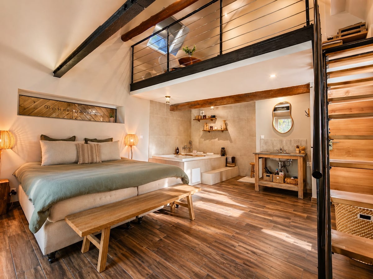 Bienvenue à Ô'spa-Zen ! Relaxez-vous dans votre spa privatif, profitez d'un moment à deux avec grand écran face au lit et au jacuzzi, avec jardin privatif et savourez un espace cosy dans un cadre paisible. 🫧🕯️ Idéal pour des instants romantiques ou une pause bien méritée, notre suite est là pour transformer vos moments en souvenirs inoubliables. ❤️🔥