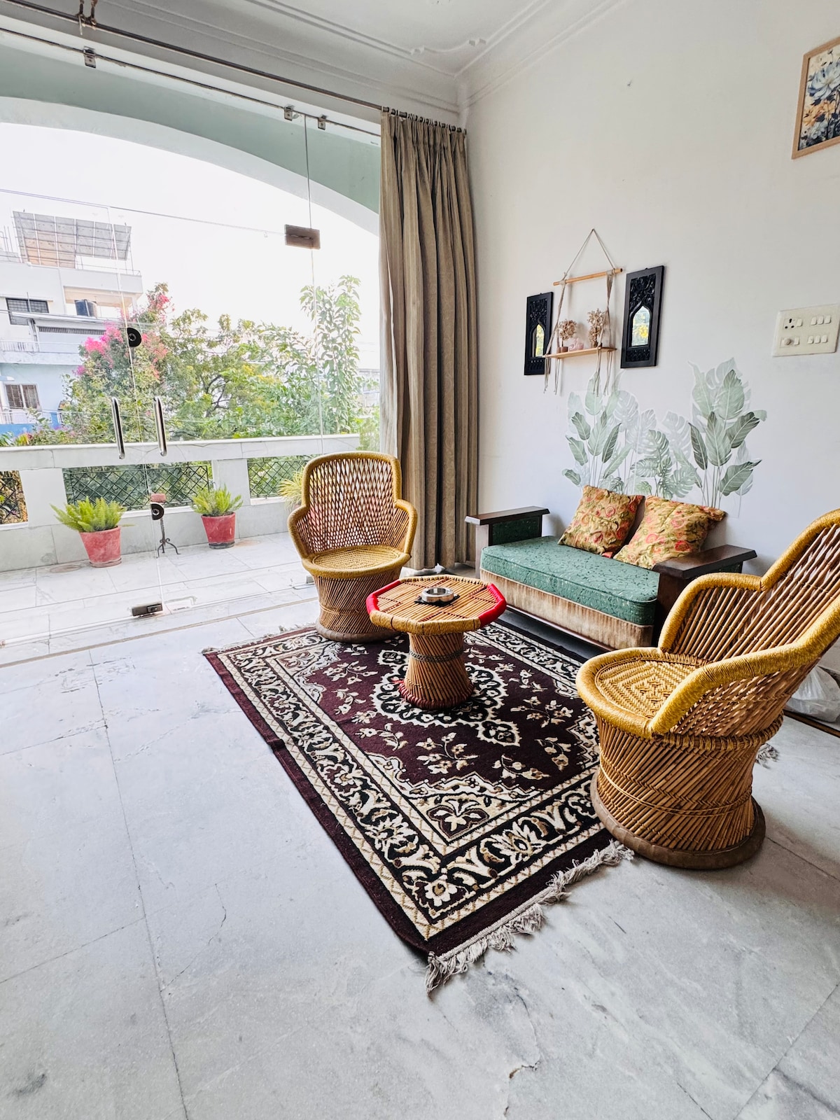 No smoking 🚭 and no alcohol. Discover the magic of Udaipur while staying in our two-bedroom house, designed for a relaxing and memorable experience. Enjoy a spacious living room perfect for unwinding, a fully equipped kitchen for home-cooked meals, and two attached bathrooms for added comfort. Our home is just 5km from Udaipur’s famous sights, including Fateh Sagar Lake, Saheliyon ki Bari, Sukhadia Circle, Moti Magri, Neemach Mata temple.