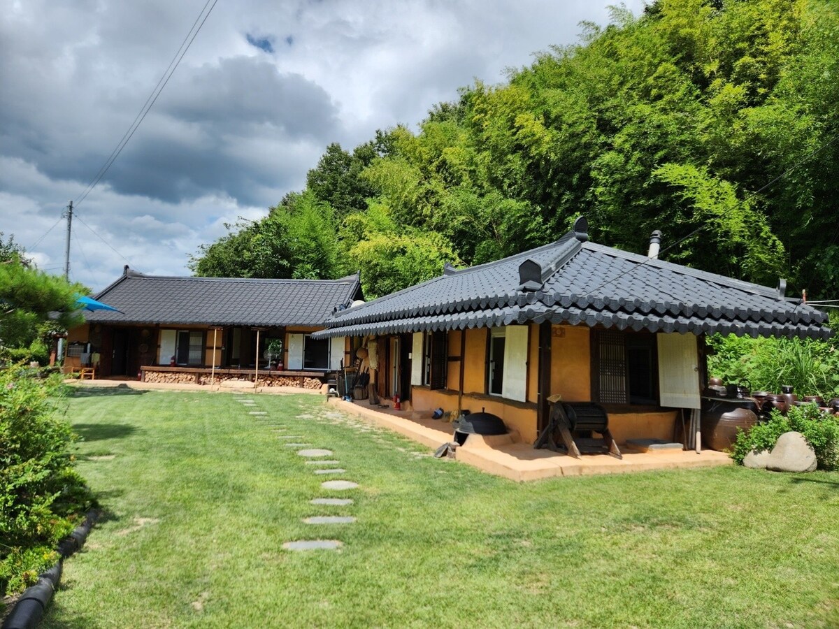6평 황토 구들방이며 홍송과 황토벽돌등 자연소재를 들여와 짜맞춤공법으로 남편과 손수 지은 공간입니다 구석구석 애정이 듬뿍 들어가 있는 곳이며 자연소재로 지어서 그런지 장마철에도 눅눅하지 않고 뽀송뽀송합니다 자연 속에 고즈넉히 위치 해 있으므로 풀벌레 소리, 처마에 빗물 떨어지는 소리 ,아침의 새소리 ,바람 부는 날 대나무 숲소리.... 다채로운 자연의 소리로 심신의 안정감을 느낄 수 있으며 밤하늘의 수 많은 별빛과 반딧불이는 '덤' 입니다 독특하면서도 평화로운 이곳에서 편안한 휴식과 진정한 '나'와의 만남을 경험을 해 보세요