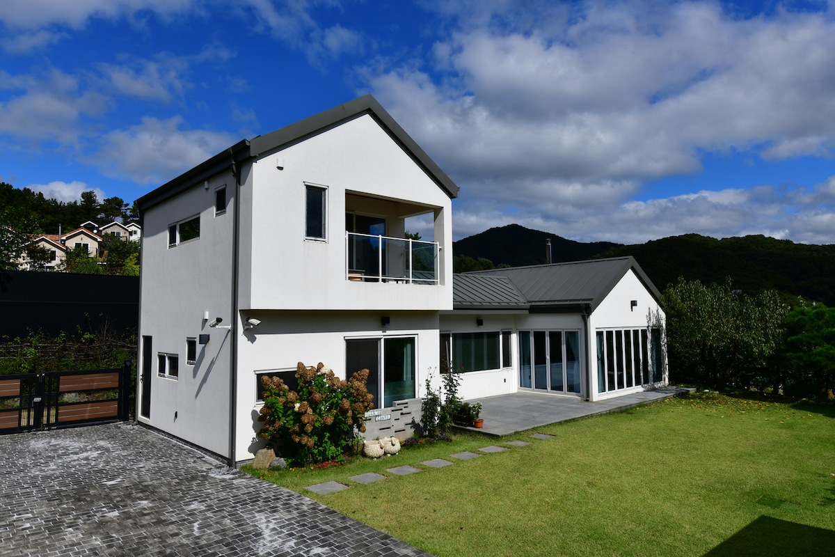 내 삶의 쉼표, 힐링스테이 주변 방해 없이, 한적하게 추억을 오롯이 쌓을 수 있는 단독 독채(하루 한팀,건물 전체 단독 사용)입니다. 야외 테라스에서 숯불 바베큐 겨울철 실내 벽난로 불멍 야외 불멍하며 솥뚜껑 삼겹살 뛰어놀수 있는 넓고 예쁜 정원 빔프로젝트 제공 턴테이블의 감성적 옛노래 편백욕조 반신욕 목재, 한지로 마감 된 안락한 실내 평온한 숙소에서 가족(연인,친구)이 함께 이 모든 것을 누려보세요^^ ♡ 각종 축제가 열리는 자라섬,남이섬 차량 10분 ♡ 가평역 차량 7분 ♡ 농협하나로마트 차량 5분 ♡ 용추계곡 차량 7분 ♡ 엘리시안 강촌스키장 차량15분 ※ 평일날 사용하고 싶으신 분은 연락주세요~