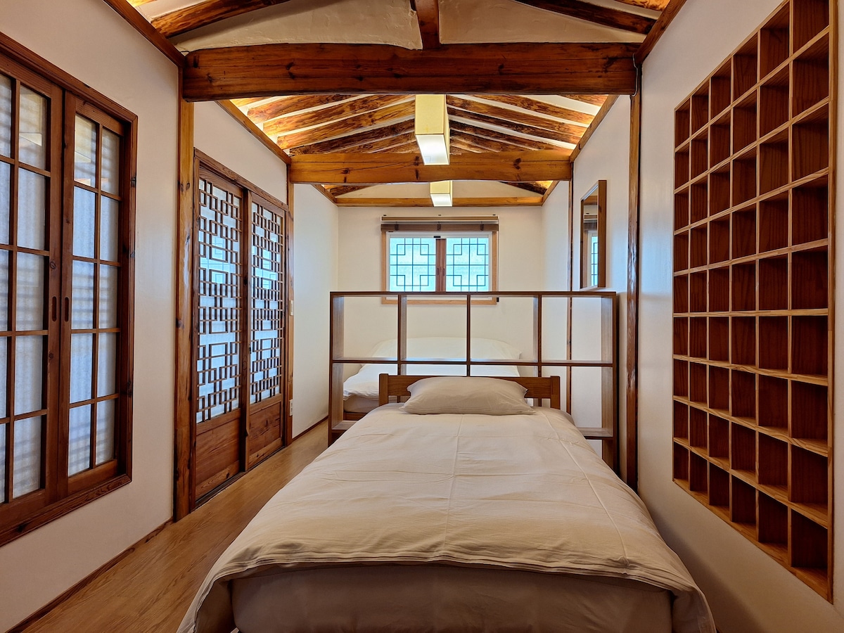 Origin is a traditional hanok house located on the stone wall of Changdeokgung Palace, a UNESCO cultural heritage. Located in the 2nd view of Bukchon, this hanok yard is filled with old trees from Changdeokgung Palace. It is located in a quiet place where you can hear the chirping of birds. There is no inconvenience at all to stay. Bukchon Hanok Village, Insa-dong, Ikseon-dong, and the National Museum of Modern and Contemporary Art are all within a 10-minute walk.
