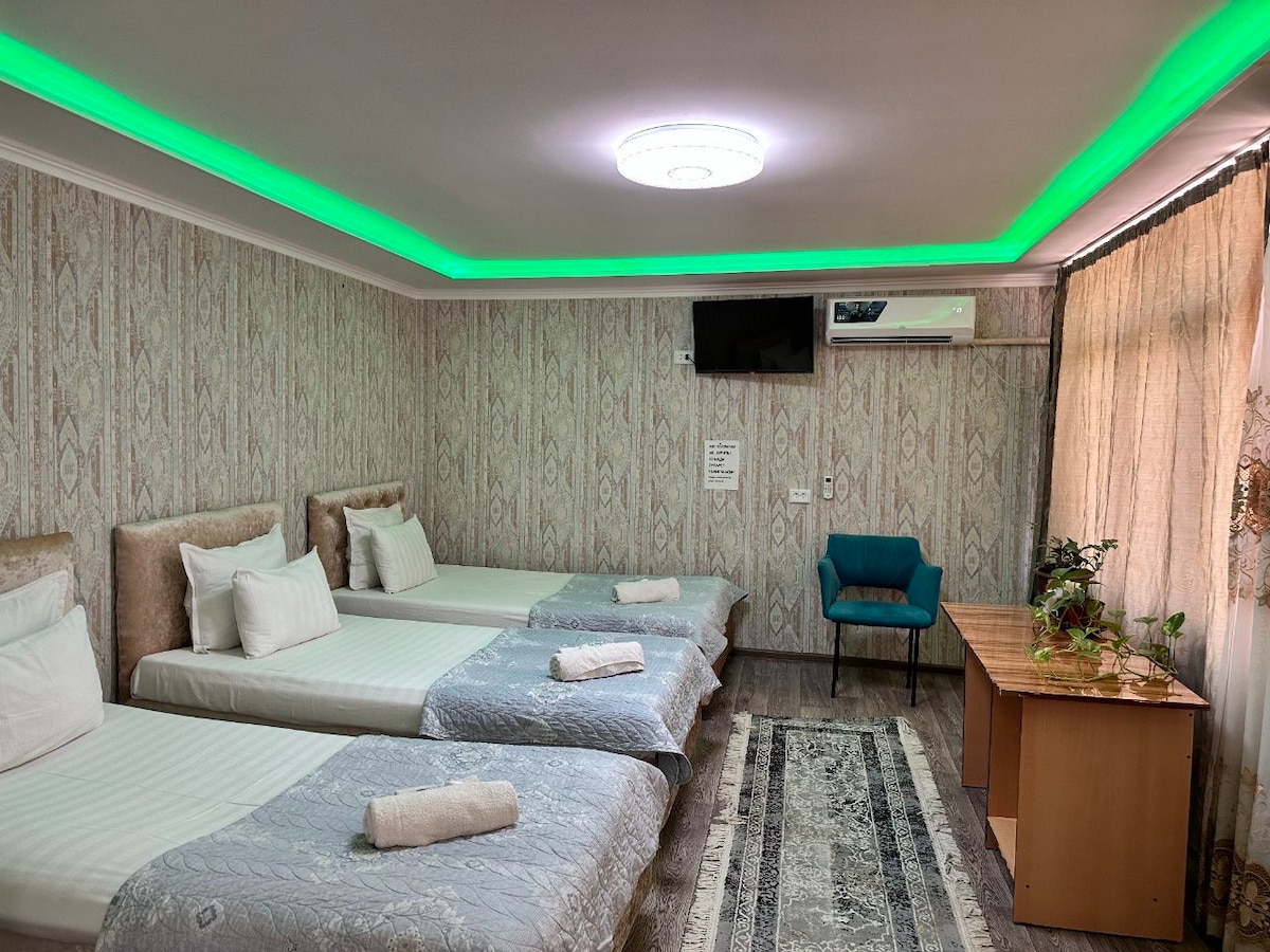 Quiet Accommodation in the Center of a Tourism Destination. Close to the main attractions such as: Zindan (19th century), Ark Fortress, Kalon Minaret, Miri Arab Madrasah and other 30 historical sites. Due to the fact that the object is close to the ancient sites, you do not need to spend hours getting to them by taxi or on foot, wasting time and money The room has its own inside bathroom with toiletries, a wardrobe, comfortable beds with orthopedic mattresses and convenient lockers.