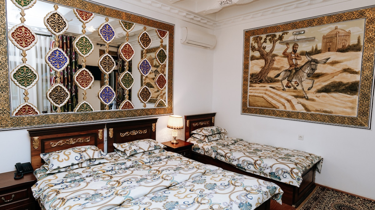 布哈拉老城中心的双床间或双人间