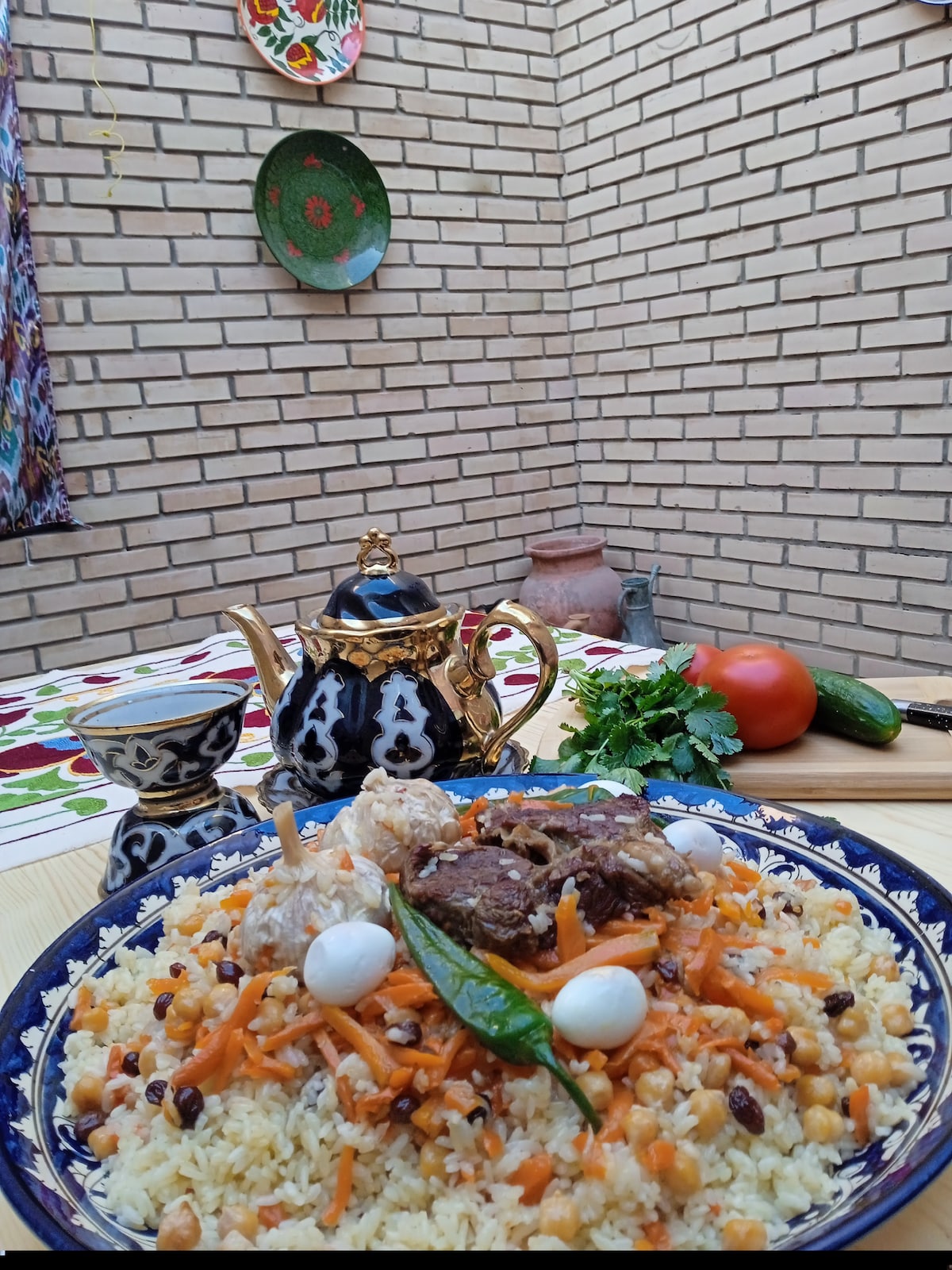 В вашем распоряжении будет старинный дом18 века со всеми удобствами, в самом центре древней части Бухары . Это позволит вам прочувствовать весь колорит и атмосферу города. Так же вы можете заказать мастер класс по приготовлению Бухарского плова .