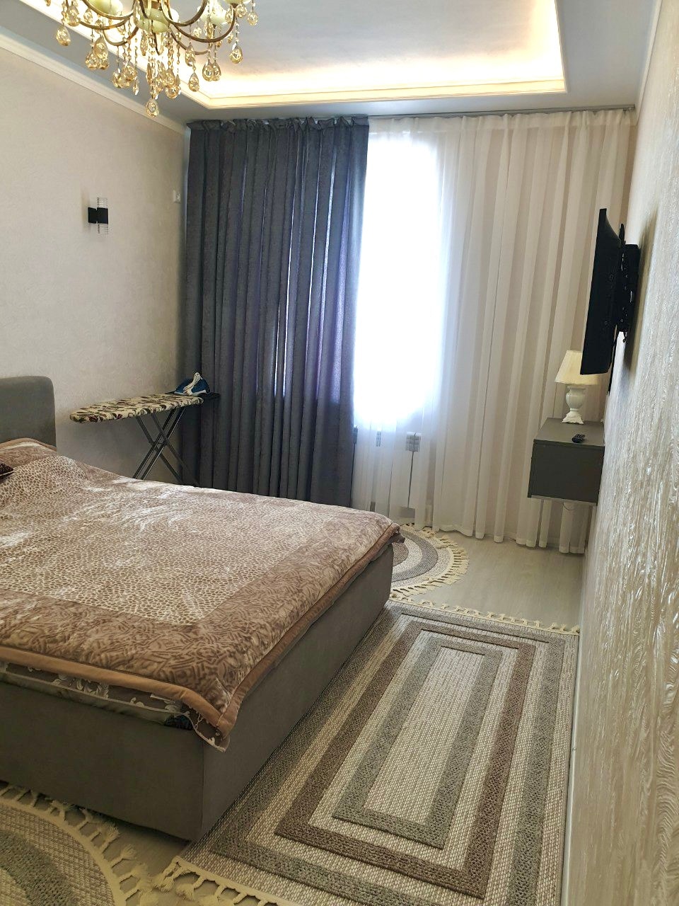 Enjoy a modern, spacious 87 m² apartment in the heart of the city, just steps from Bukhara Mall. The apartment features 2 bright rooms with 1 king-size bed and 2 single beds—perfect for families or groups. Cook at home in a fully equipped kitchen with all utensils, a large fridge, and enjoy free Wi-Fi ,TV and washing machine. Located in a lively area close to shops, cafes, and everything you need for a comfortable and convenient stay.