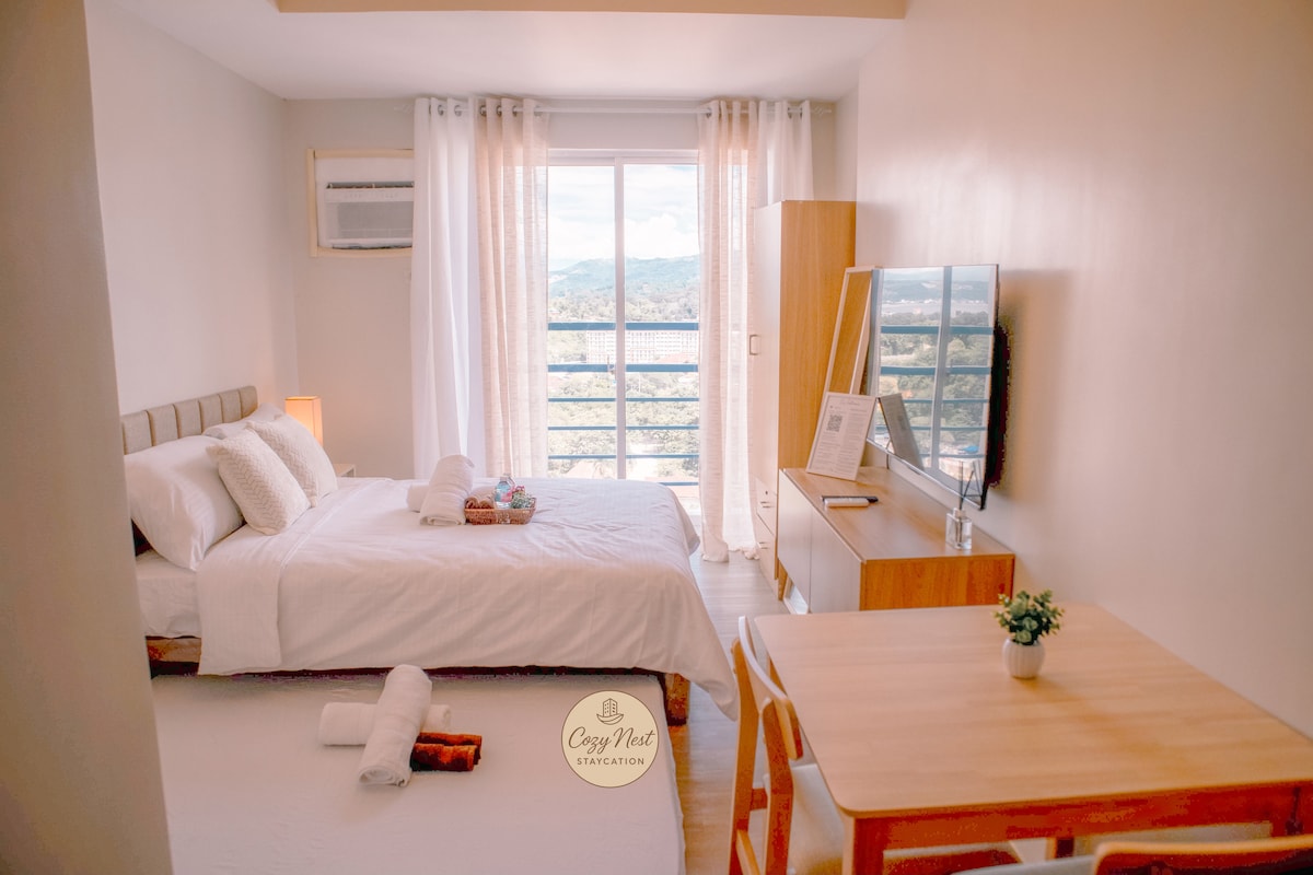 Enjoy a relaxing city escape in this clean, cozy condo — walking distance to malls, restaurants, cafes, and transport. The unit features high-speed internet, a comfortable queen bed, kitchen & bathroom essentials. Perfect for staycations, business trips, or long-term stays in CDO. ✅ Pool | ✅ WiFi 100 Mbps | ✅ Parking | ✅ Netflix | ✅ Hot Shower | ✅ Self Check-in