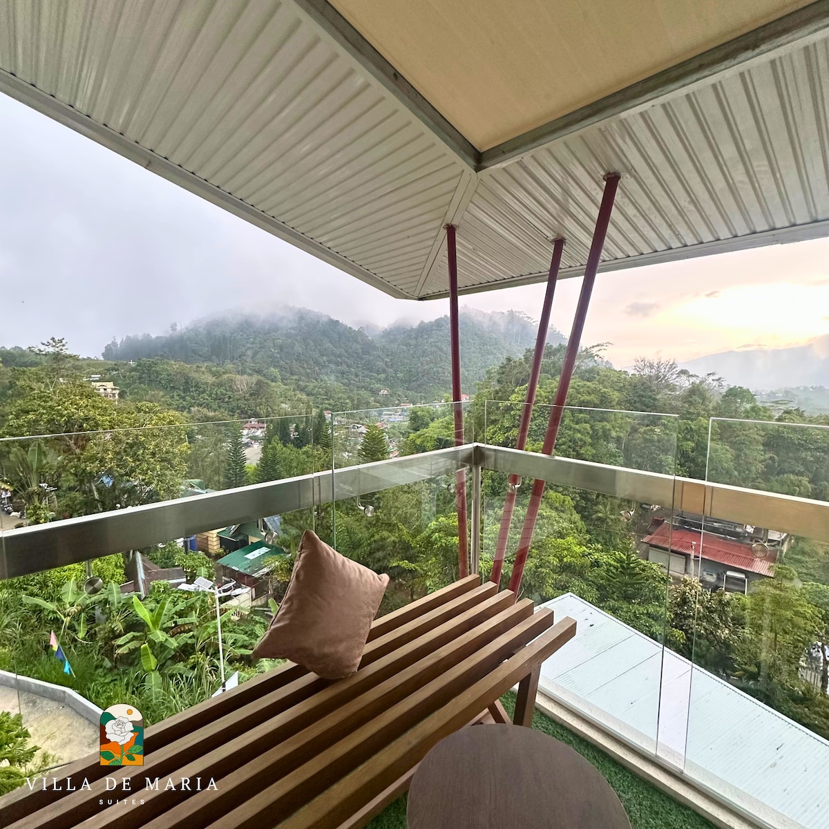 Emerald Suite is a spacious loft-and-dorm-style haven perfect for 12–15 guests. Enjoy cozy living and dining areas, a 43" Smart TV, and a refreshing hot & cold shower with complete toiletries and a hair dryer. Unwind on the big balcony or at your private coffee corner with stunning views of the chapel and sea of clouds. With free Wi-Fi, fresh towels, and access to Villa de Maria’s gardens, pond, and gazebo, this suite offers the perfect blend of comfort, space, and serenity.
