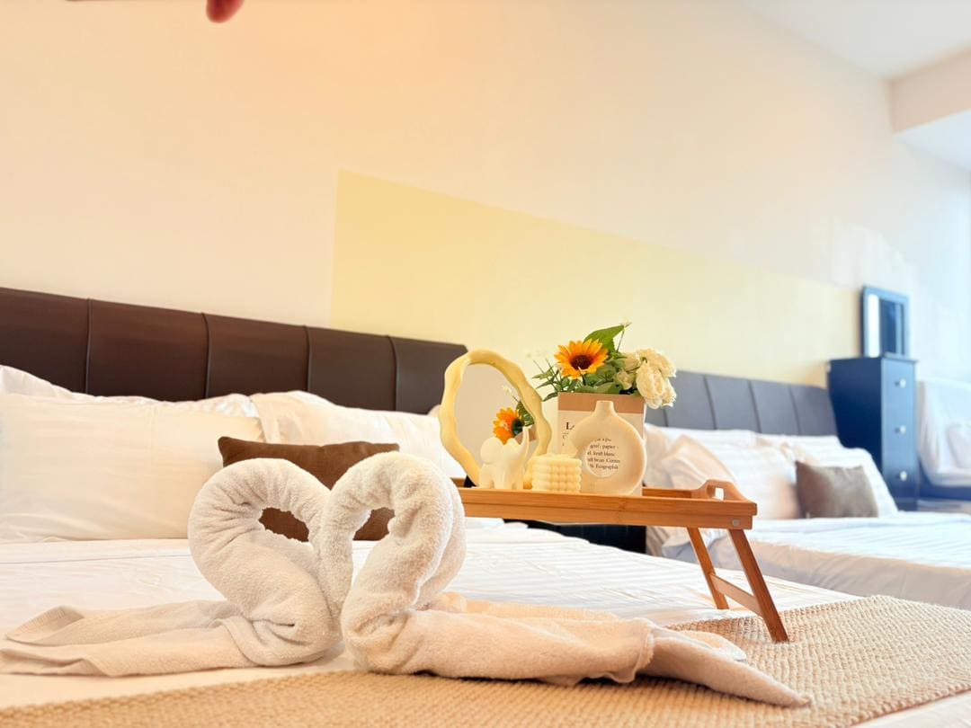 Why stay at The Palm's Junior Suite at Lucentia Residence - the views of KL - beautifully decorated with a fun spirit - centrally located - near public transportation - fast wifi - TV with Netflix, Apple TV, Prime Video - 2 gorgeous pools - gym, pool table, BBQ pits, paino - super host manager - garage parking - recommended for 2, max can sleeps 3 - LaLa Port Shopping Mall & entertainment street are attached - grocery, drug store, and many restaurants are attached - movie theater Gsc beside