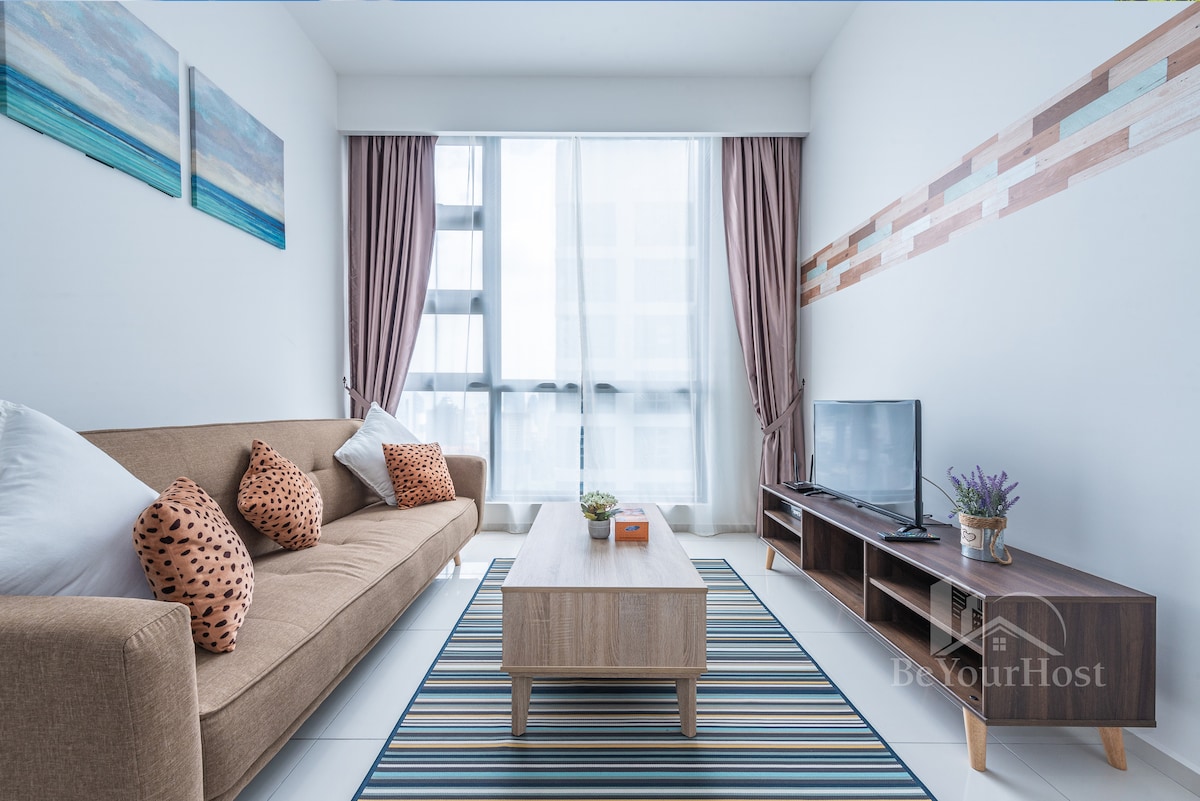 This 1 Br apartment comes with a breathtaking view of KL skyline. It has a 3-seaters sofa living room, dining table, kitchen, desk and a big balcony facing the KL Tower & Petronas Twin Towers. It comes with a 55” TV, Hi-Speed WIFI and a Queen size bed that can fit you comfortably. *The other unit of this Dual Key apartment is a compact Studio with Queen size bed, pantry, washroom & bath. It can fit in friends who travel with you with privacy. Welcome to ask for more details!