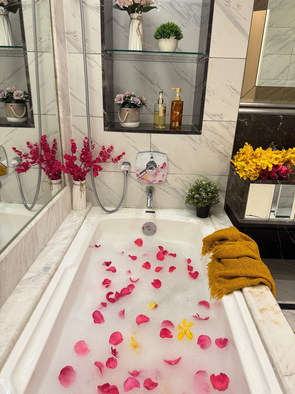 A thoughtfully curated partitioned 2 room retreat in the heart of Sri Hartamas. This artfully styled apartment blends warmth and character — think candlelit dining, gallery-wall art, and a spa-inspired marble bathtub with a wooden bath tray. Sleep up to 4 guests across two queen beds, cook in a full kitchen, and unwind on the 27th-floor sky terrace with panoramic KL views. With a rooftop infinity pool, gym, free parking, and Plaza Damas at your doorstep — everything you need is already here.