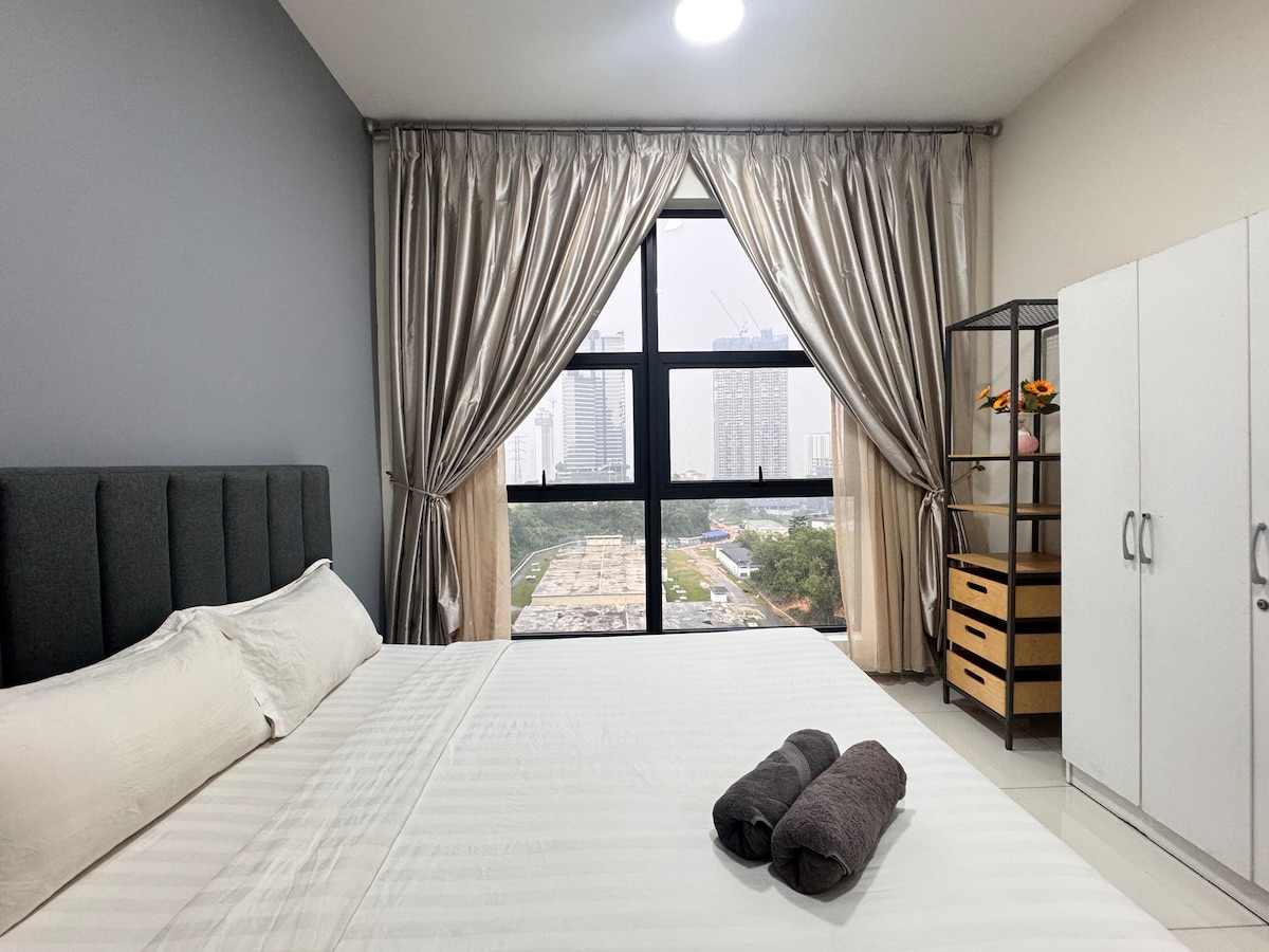 Welcome to our meticulously clean, our humble house located in Kuala Lumpur! Perched on the highest floor, enjoy stunning, panoramic views that truly inspire. Our home is perfect for families, offering access to fantastic amenities: a refreshing swimming pool, well-equipped gym, and fun playground. Benefit from easy access to Puchong, KESAS Highway, Klang Valley, and KL City. Book your unforgettable experience now! 🤗