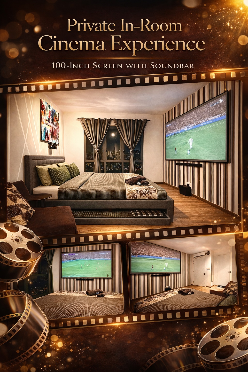 StarSuiteAC – Luxury Stay Above the Clouds! A luxuriously designed duplex on high floor, offering a breathtaking cloud-carpet view of the KL skyline. Relax under the galaxy-like starry ceiling and experience a staycation like no other! Enjoy a soundproof karaoke room, billiard & air hockey, and a home cinema with surround sound for a true movie experience. Facilities : kitchen, fridge, microwave, rice cooker, air-fryer, water filter, washing machine (with dryer), massage chair, etc.