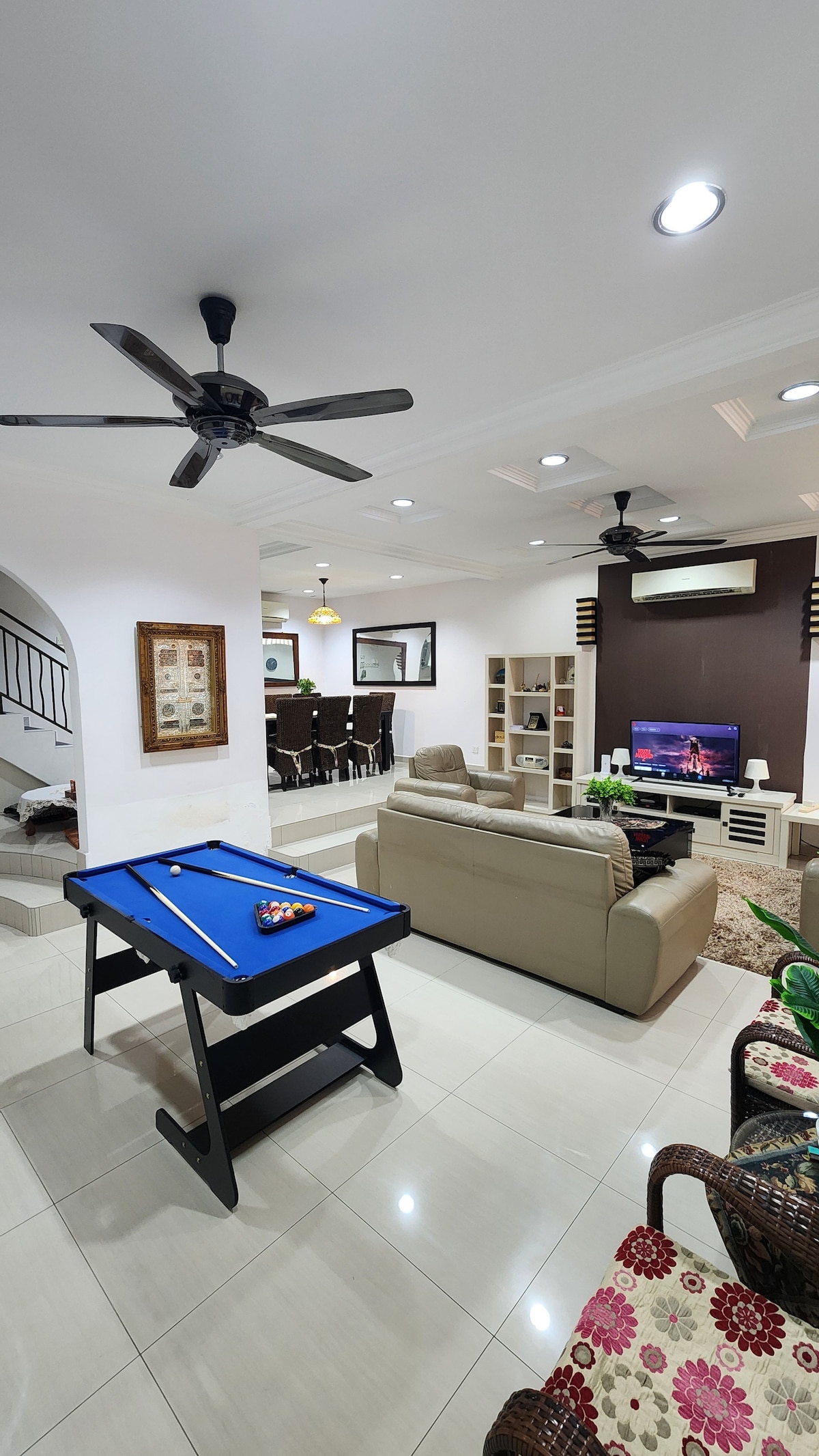 Muslim Friendly No Pork & No alcohol/beer allowed 🔵 SWIMMING POOL ADULT/CHILD 🔵 GAZEBO 🔵 WATER PURIFIER 🔵 FREE WIFI 🔵 PARKING AREA 🔵 WET&DRY KICHEN 🔵 BBQ 🔵 POOLSIDE TABLE AND CHAIRS 🔵 WASHING MACHINE 🔵 FRIDGE 🔵 MICROWAVE - 4 BEDROOMS - 3 QUEEN BED, 2 SINGLE BED, 1 EXTRA SINGLE MATTRESS, TOTO - FULLY AIRCOND - WATER HEATER 2 - SMART LED ANDROID TV, NETFLIX IRON HAIR DRYER SOFA,STOOLS KEETLE MIXER TOASTER HANGER SHOWER SOAP/SHAMPOO COFFEE /TEA/SUGAR/DRINKS - TOWEL