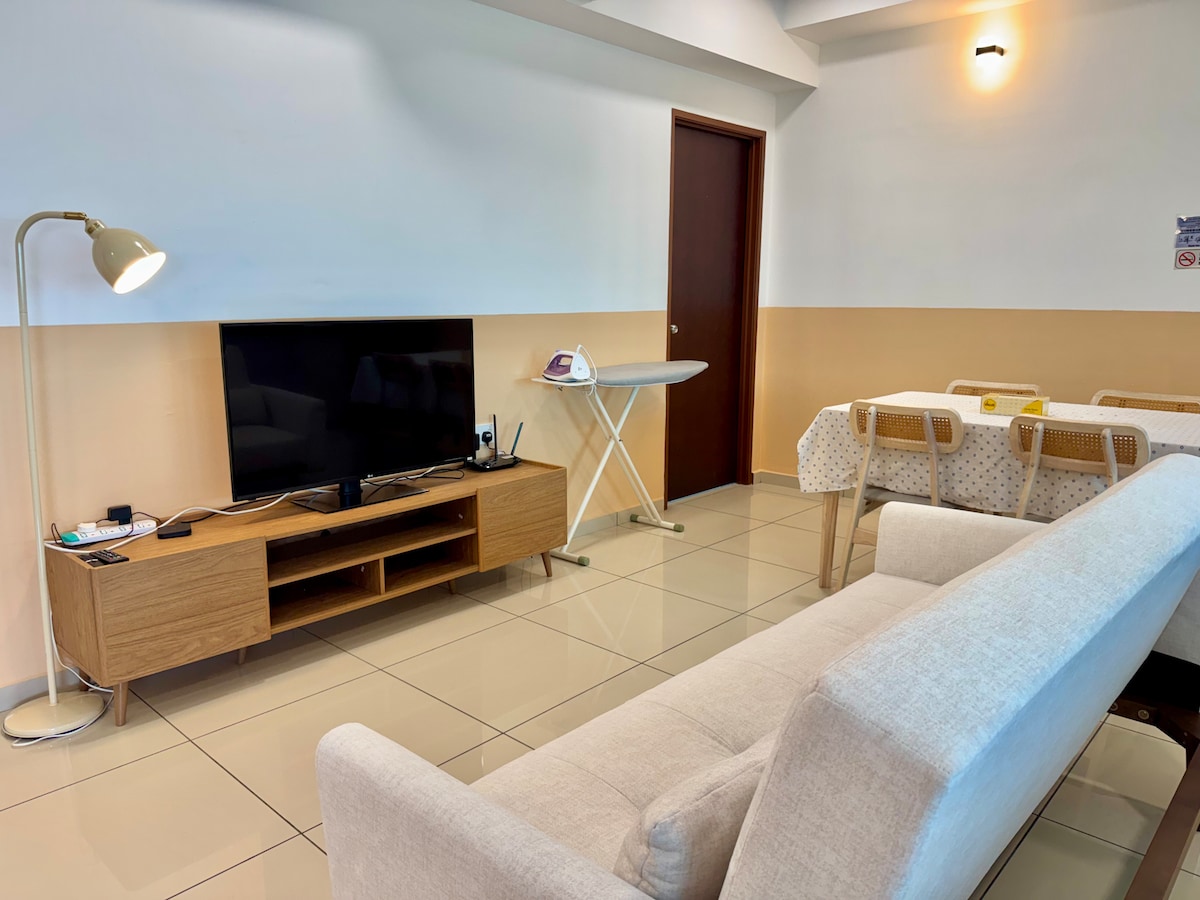Newly built high-floor 3-bedroom with 2-bathroom apartment located in the heart of Bukit Mertajam, Penang. Strategically situated 10 minutes drive to Penang bridge, Icon City, Sunway Carnival Mall, and Sunway Medical Centre Penang &5 min to KPJ. High speed wifi. we got provide TV with Best Media box so you can relax after a long day of tour. Quality and affordable honestly Cozy home Our place is highly recommended for small group of family and friends. It perfectly accommodates up to 7 guests