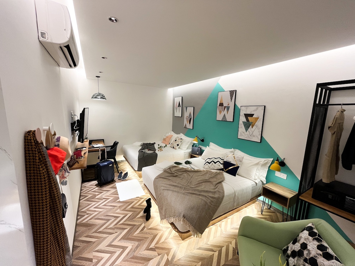 Our Superior Double Room is designed exquisitely for families or groups. Each Suite comes with: • Queen-sized "King Koil Spine Protect" beds • An Ensuite bathroom • 42" Smart TV • Free High-Speed Wi-Fi • Room size at approximately 190 Square Feet. The Suite fits 2 Adults comfortably. Highly recommended for family & group travelers who are looking for an affordable yet comfortable stay with a nice window view overseeing the buzzing town of Bagan, Butterworth.