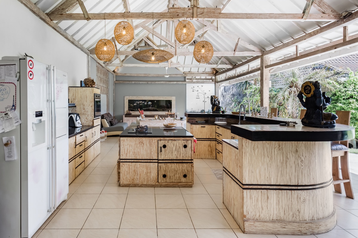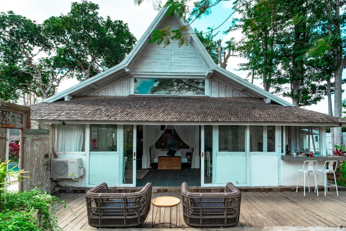 ✔ Fully Staffed ✔ Fantastic Central Location ✔ 25Mbps+ WiFi ✔ 16m Pool & Poolside Bar ✔ Private Veranda and Alfresco Bath The Bungalow is a traditional teakwood Indonesian villa featuring two beautiful bedrooms, a tropical outdoor bathroom, a spacious living and dining area, and a fully-equipped kitchen. This villa is one of 7 unique and private abodes sharing the team of staff, pool, poolside bar and stunning tropical gardens at Sejoli Villas, our family run boutique retreat in Umalas, Bali.