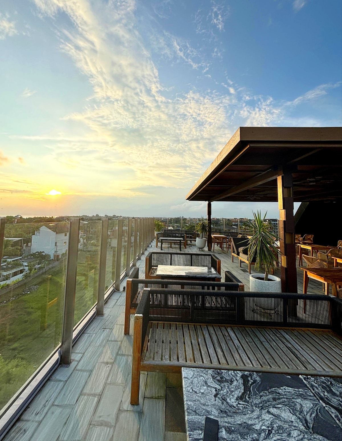 A secluded and romantic boutique villa on the cliff of Impossible Beach, with a breathtaking view of the Indian Ocean from your private balcony. This is the ideal place for your honeymoon getaway, where you can relax and enjoy the beauty of nature with your loved one in a unique and cozy treehouse room. Our honeymoon suite is furnished with a spacious balcony with a dining table and a sofa, and a luxurious bathtub where you can soak in the stunning sunset view over the ocean.